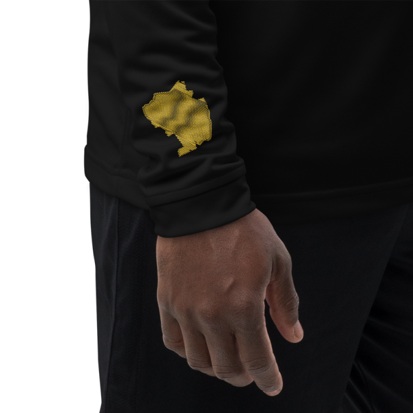 - Symbole du territoir de la cote d'Ivoir en broderie dorée discret, sur la manche droite du Pull Adidas Zippé